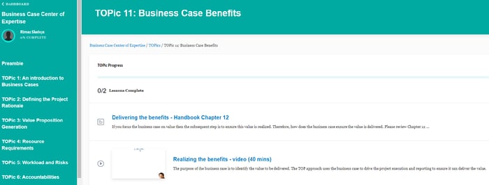 TOP Business Case Center of Expertise equips organizations to position the business case as the master control document of the project.